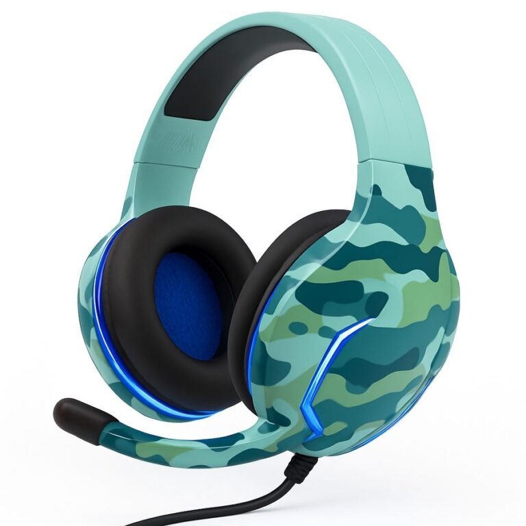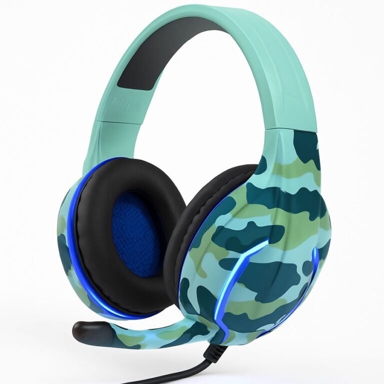 هيدفون جيمينج KOMC بإضاءة LED للكمبيوتر – تصميم عسكري (Camouflage)