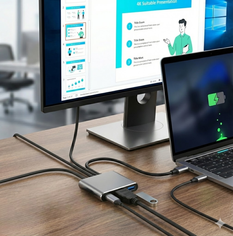 محول type-C إلى HDMI 3 في 1 مع USB 3.0 وشحن Type-C