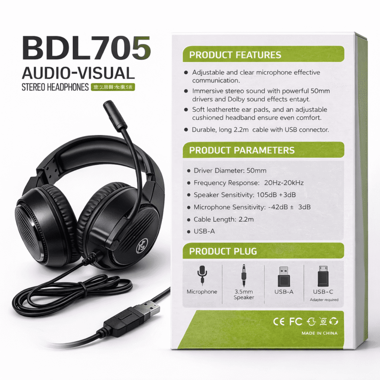 سماعة الألعاب BDL705 USB بصوت ستيريو وميكروفون احترافي