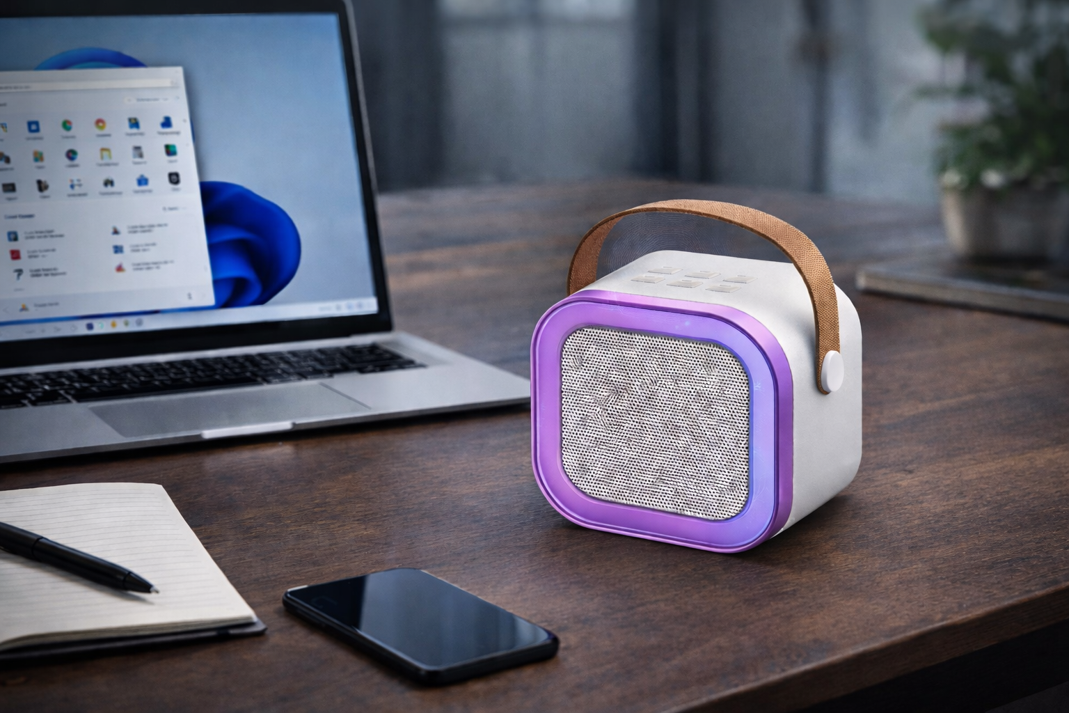 Its practical design makes it suitable for use at the office, at home or on the go, with a deep bass sound that gives you a distinctive listening experience compared to its small size.