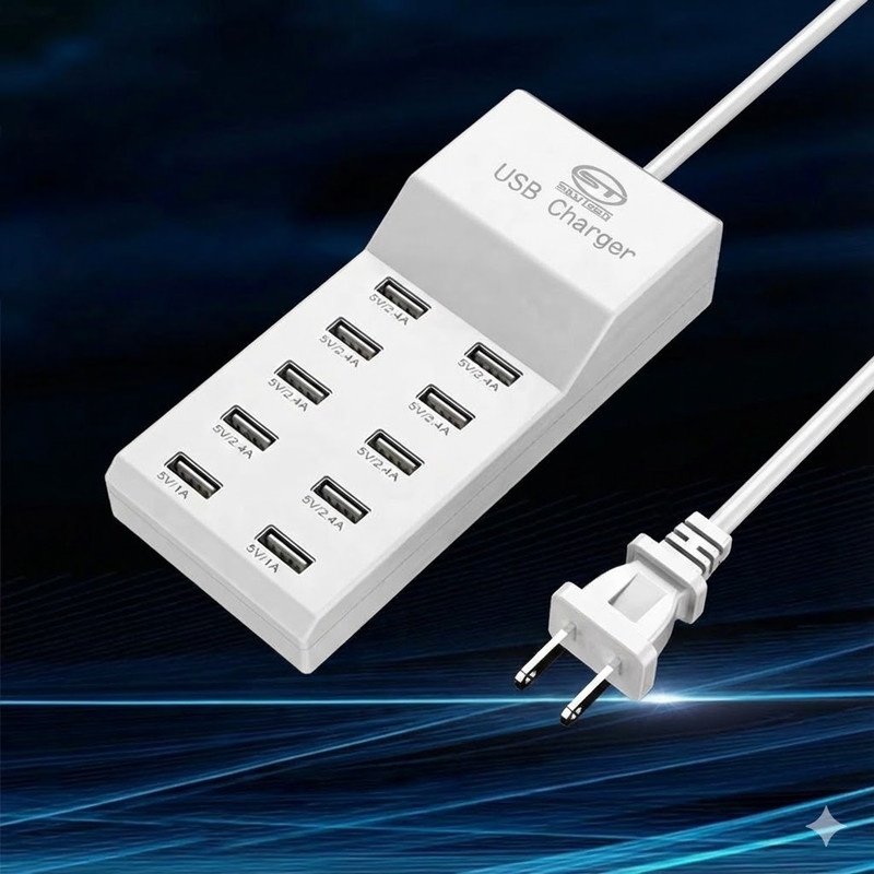 50W USB charging station with 10 smart USB ports, family-sized for charging multiple devices