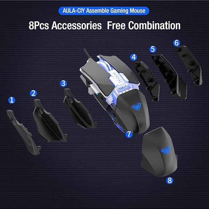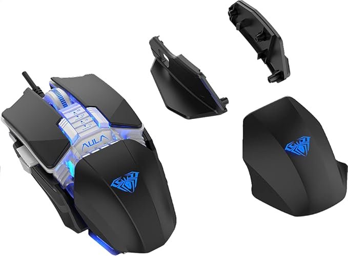 ماوس AULA H508 جيمينج بتصميم Modular قابل للتغيير، إضاءة RGB جذابة، تحكم دقيق واستجابة سريعة، مناسب للاعبين والـ PC Gaming.