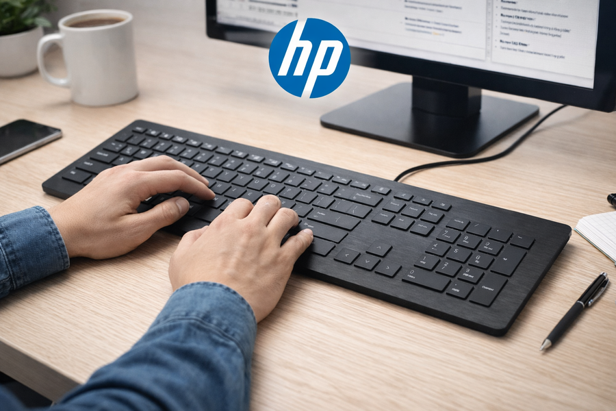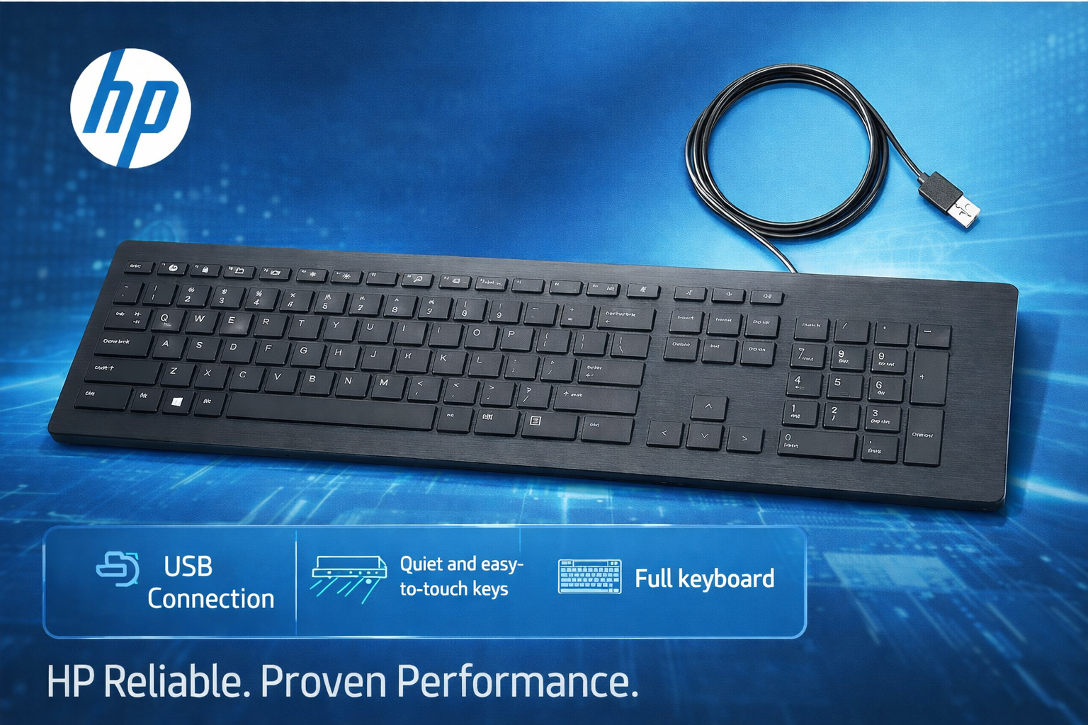 استمتع مع كيبورد HP Premium الأصلي. تصميم رفيع وعصري من الألمنيوم المصقول، ومفاتيح هادئة وسريعة الاستجابة، مثالية للعمل المكتبي والإنتاجية العالية.