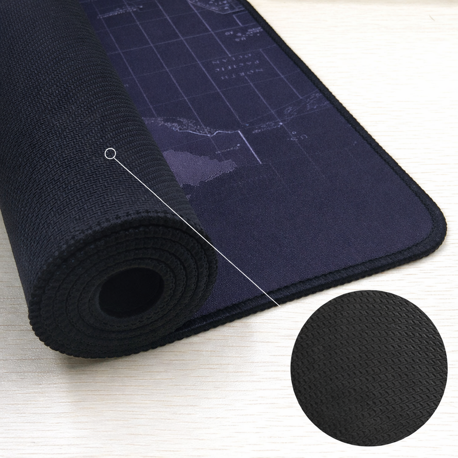 ماوس باد خريطة العالم بتصميم أنيق، سطح ناعم لحركة دقيقة، قاعدة مطاطية مانعة للانزلاق، وحواف مخيطة للاستخدام الطويل.